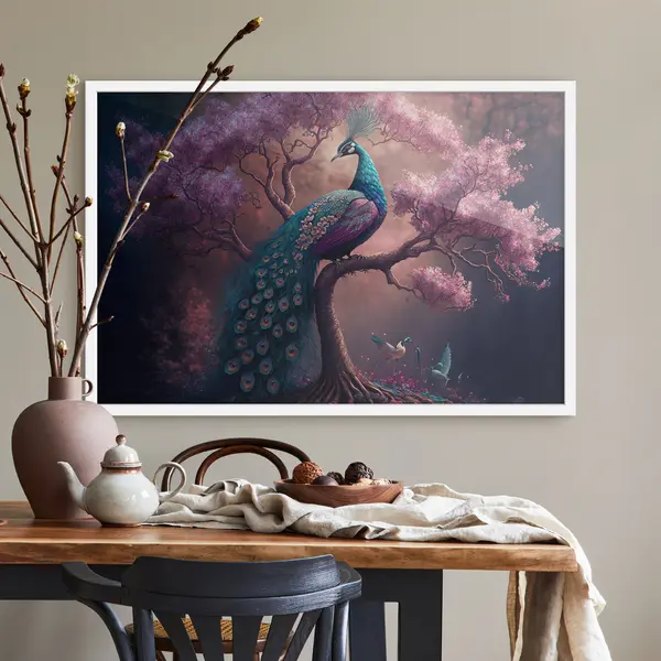Poster Pavone tra i fiori di ciliegio in fiore Nr f34875