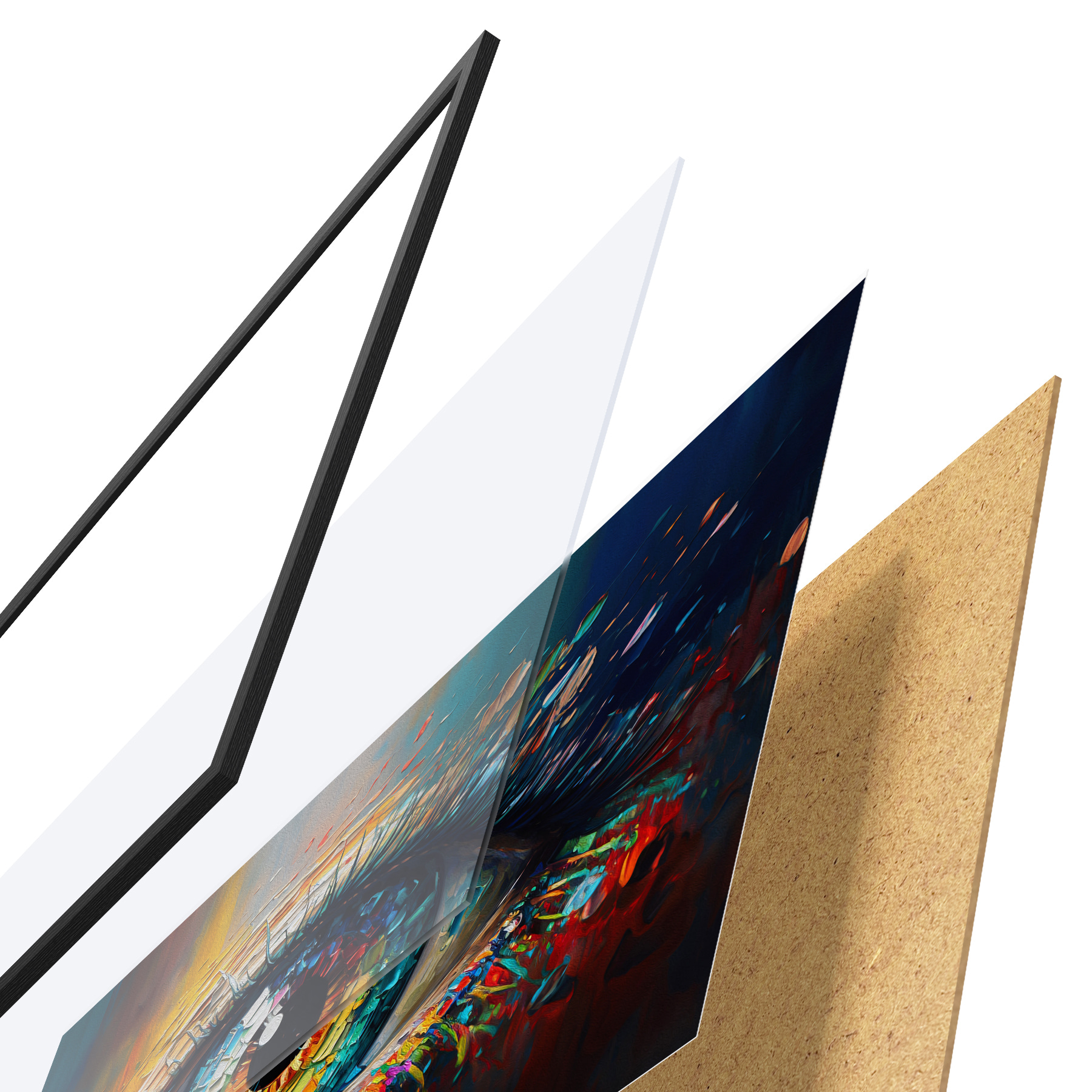 Il poster è composto da cornice, plexiglass, immagine stampata e supporto in truciolato. Il poster può essere immediatamente appeso alla parete grazie ai supporti sul retro.