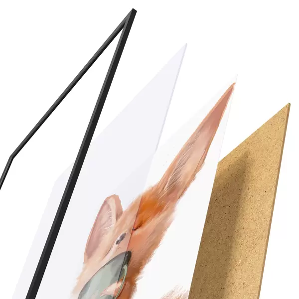 Il poster è composto da cornice, plexiglass, immagine stampata e supporto in truciolato. Il poster può essere immediatamente appeso alla parete grazie ai supporti sul retro.