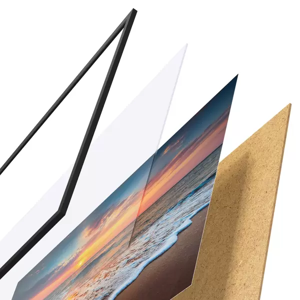 Il poster è composto da cornice, plexiglass, immagine stampata e supporto in truciolato. Il poster può essere immediatamente appeso alla parete grazie ai supporti sul retro.