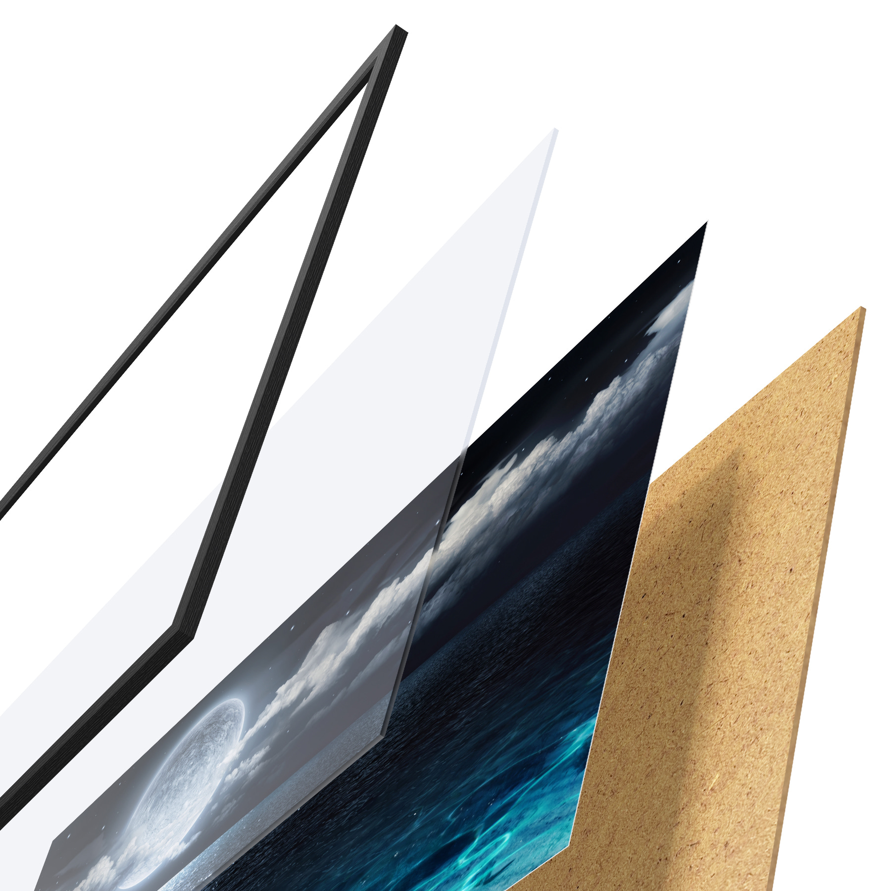Il poster è composto da cornice, plexiglass, immagine stampata e supporto in truciolato. Il poster può essere immediatamente appeso alla parete grazie ai supporti sul retro.