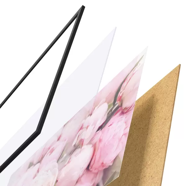 Il poster è composto da cornice, plexiglass, immagine stampata e supporto in truciolato. Il poster può essere immediatamente appeso alla parete grazie ai supporti sul retro.