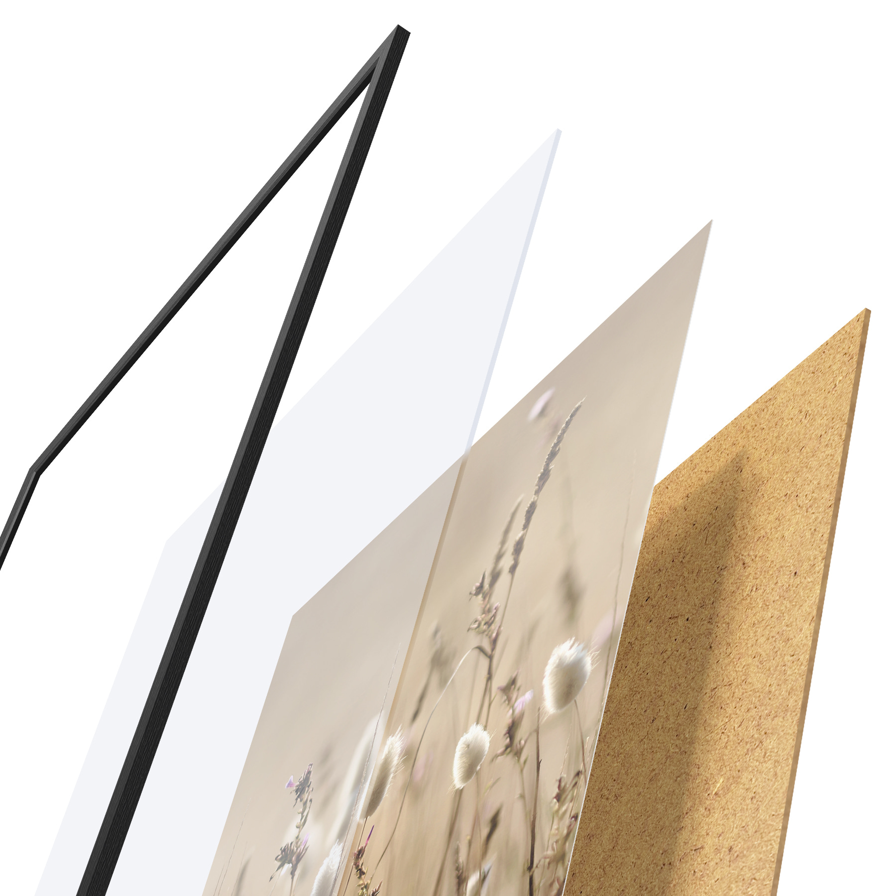 Il poster è composto da cornice, plexiglass, immagine stampata e supporto in truciolato. Il poster può essere immediatamente appeso alla parete grazie ai supporti sul retro.
