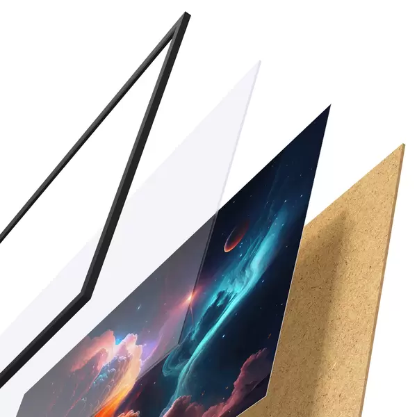 Il poster è composto da cornice, plexiglass, immagine stampata e supporto in truciolato. Il poster può essere immediatamente appeso alla parete grazie ai supporti sul retro.