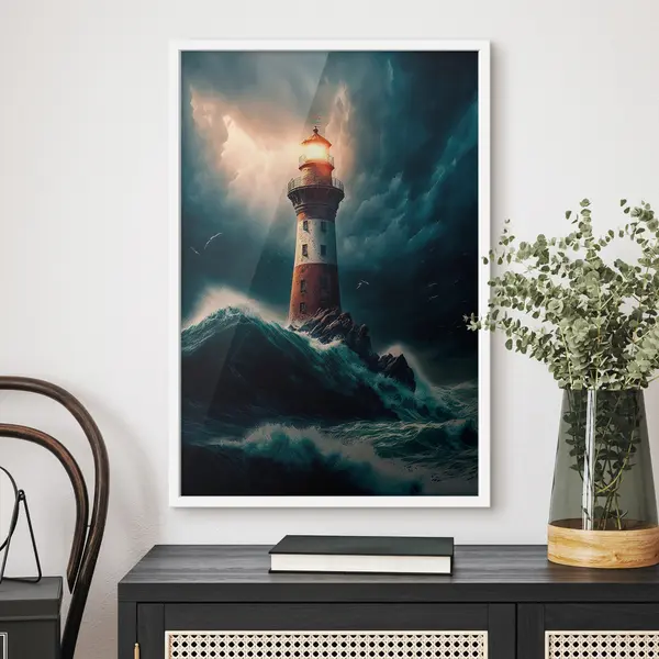 Poster Faro che guida attraverso acque turbolente Nr f35349