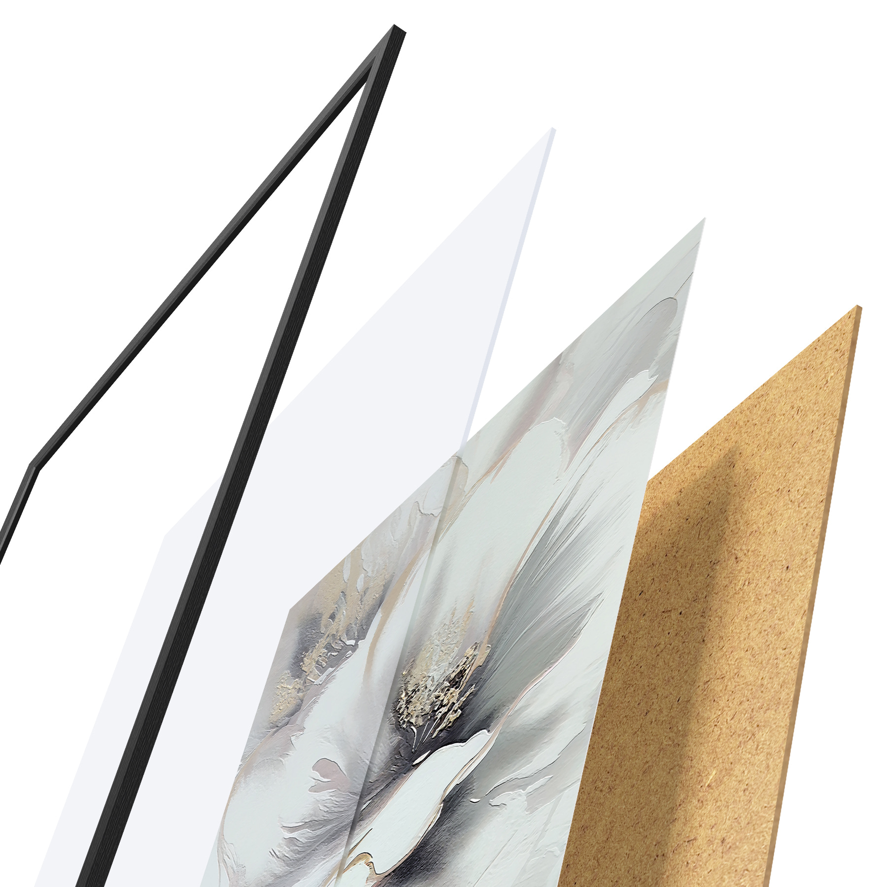 Il poster è composto da cornice, plexiglass, immagine stampata e supporto in truciolato. Il poster può essere immediatamente appeso alla parete grazie ai supporti sul retro.