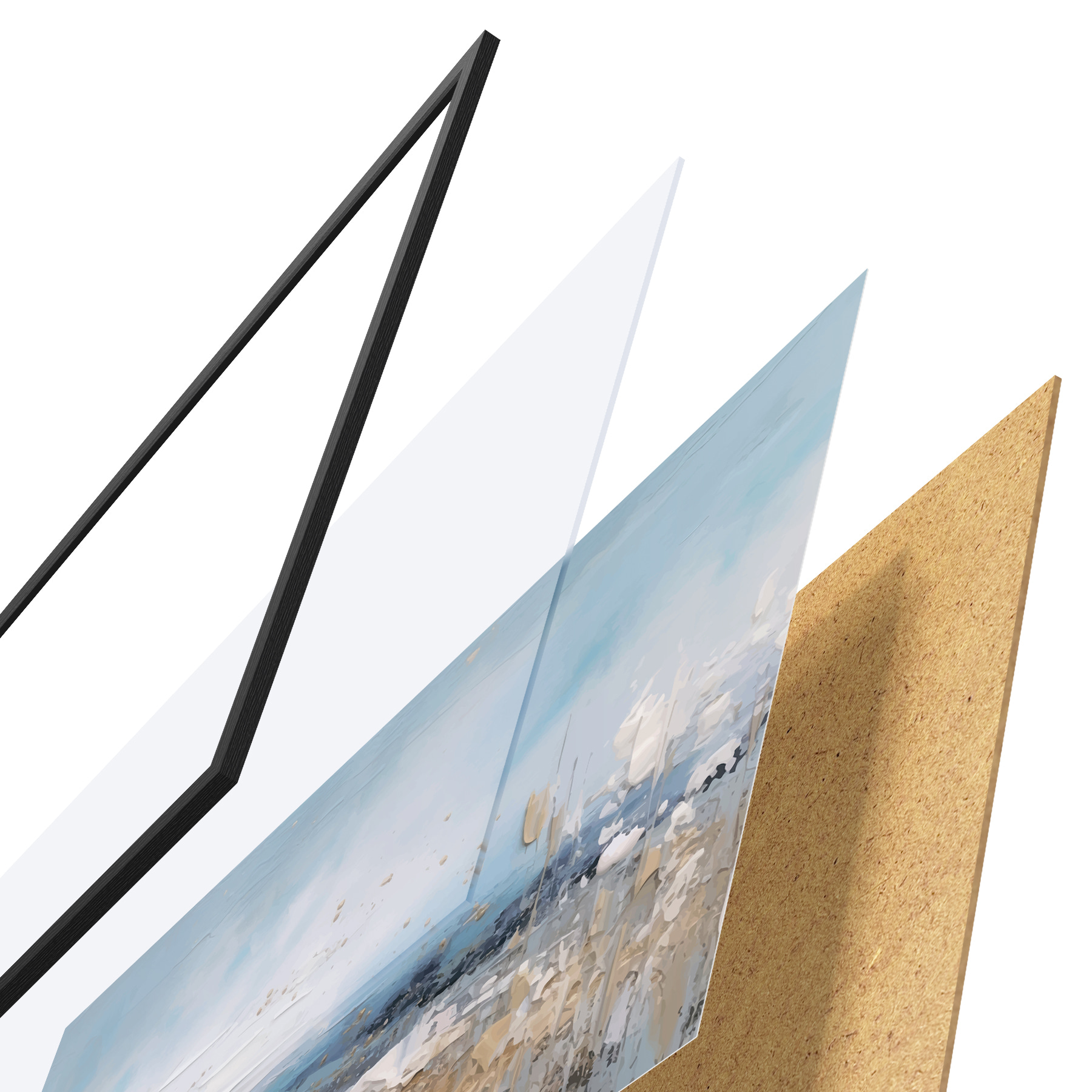 Il poster è composto da cornice, plexiglass, immagine stampata e supporto in truciolato. Il poster può essere immediatamente appeso alla parete grazie ai supporti sul retro.