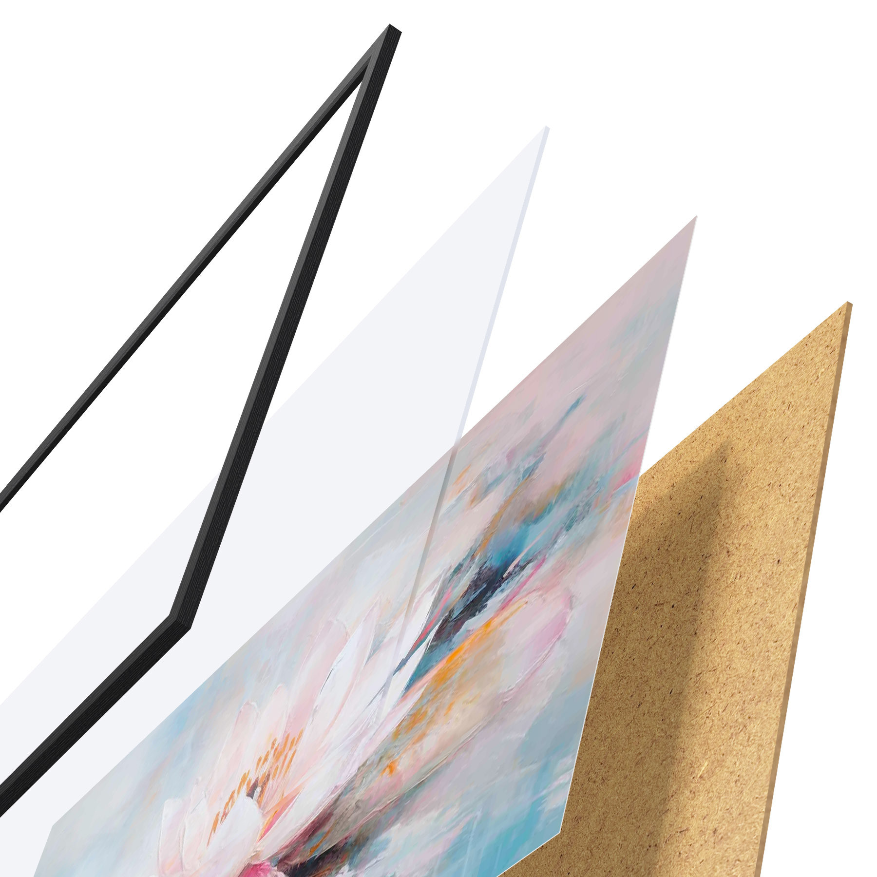 Il poster è composto da cornice, plexiglass, immagine stampata e supporto in truciolato. Il poster può essere immediatamente appeso alla parete grazie ai supporti sul retro.