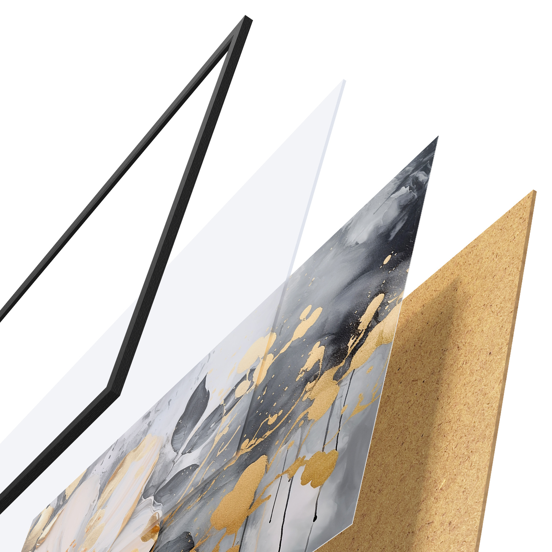 Il poster è composto da cornice, plexiglass, immagine stampata e supporto in truciolato. Il poster può essere immediatamente appeso alla parete grazie ai supporti sul retro.