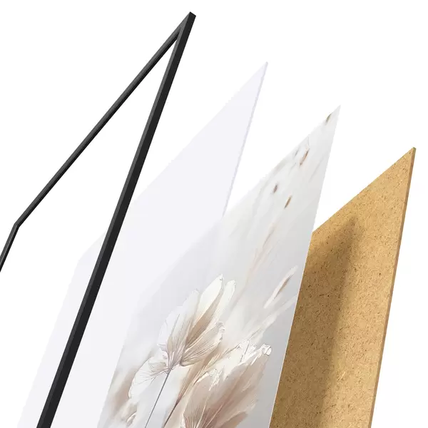 Il poster è composto da cornice, plexiglass, immagine stampata e supporto in truciolato. Il poster può essere immediatamente appeso alla parete grazie ai supporti sul retro.