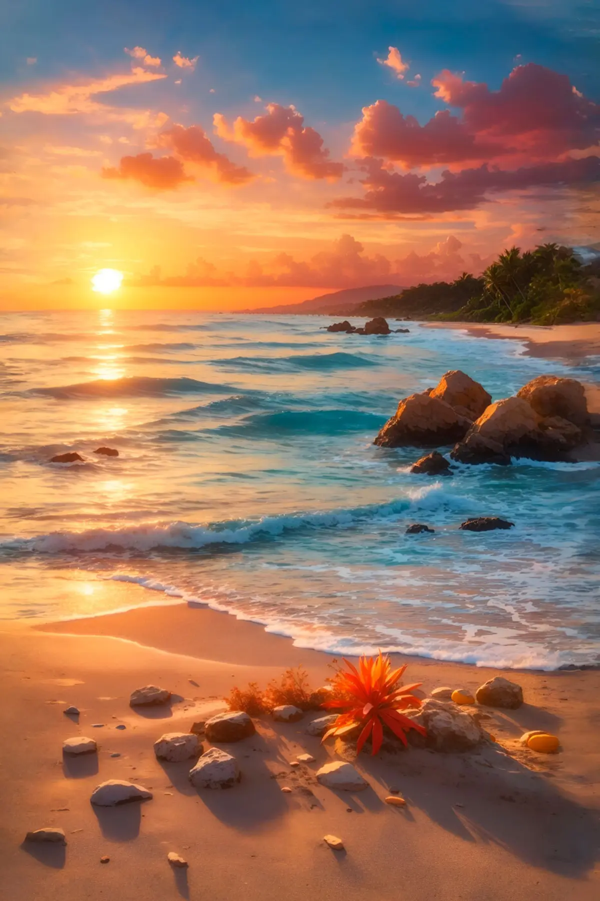 Poster Tramonto sereno su una spiaggia tranquilla f35647