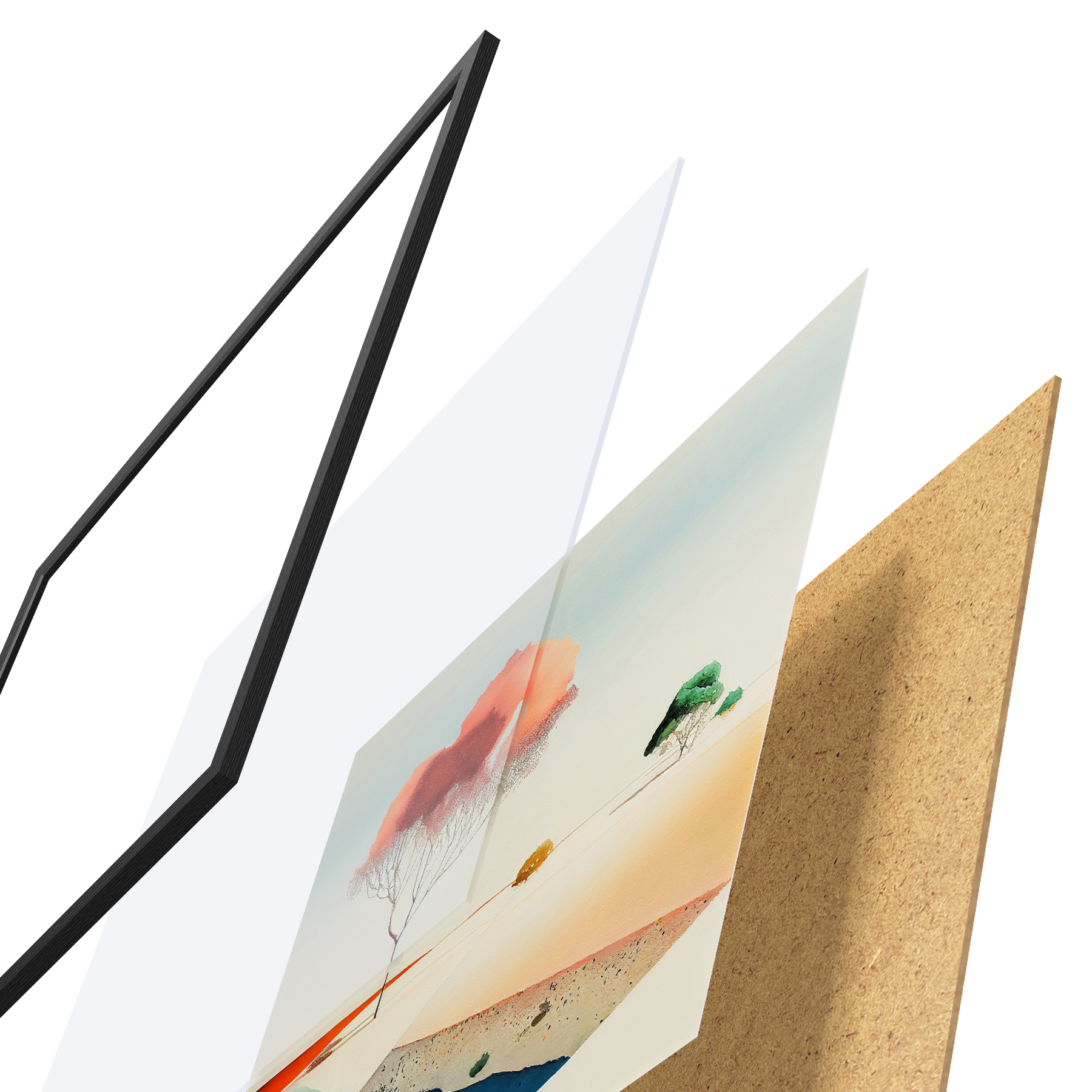 Il poster è composto da cornice, plexiglass, immagine stampata e supporto in truciolato. Il poster può essere immediatamente appeso alla parete grazie ai supporti sul retro.