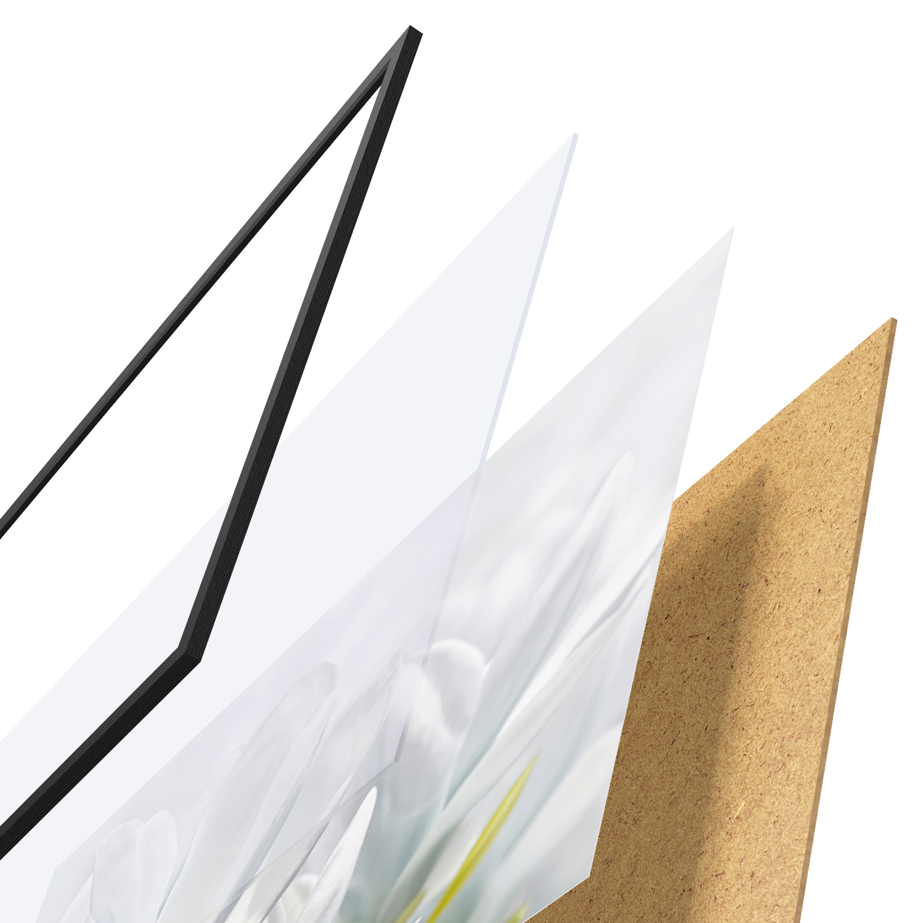 Il poster è composto da cornice, plexiglass, immagine stampata e supporto in truciolato. Il poster può essere immediatamente appeso alla parete grazie ai supporti sul retro.
