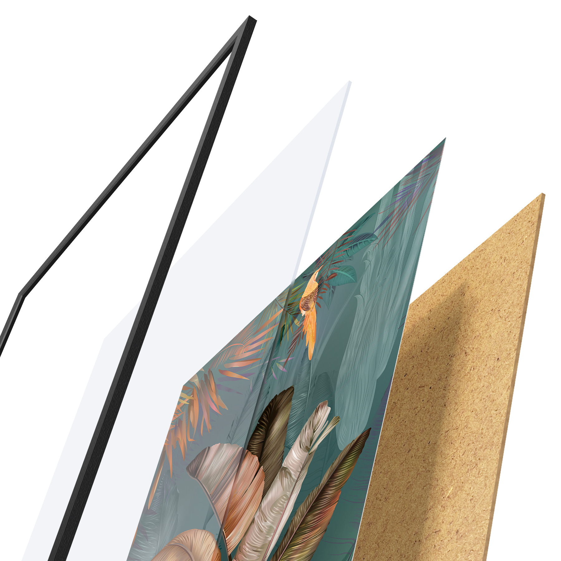 Il poster è composto da cornice, plexiglass, immagine stampata e supporto in truciolato. Il poster può essere immediatamente appeso alla parete grazie ai supporti sul retro.