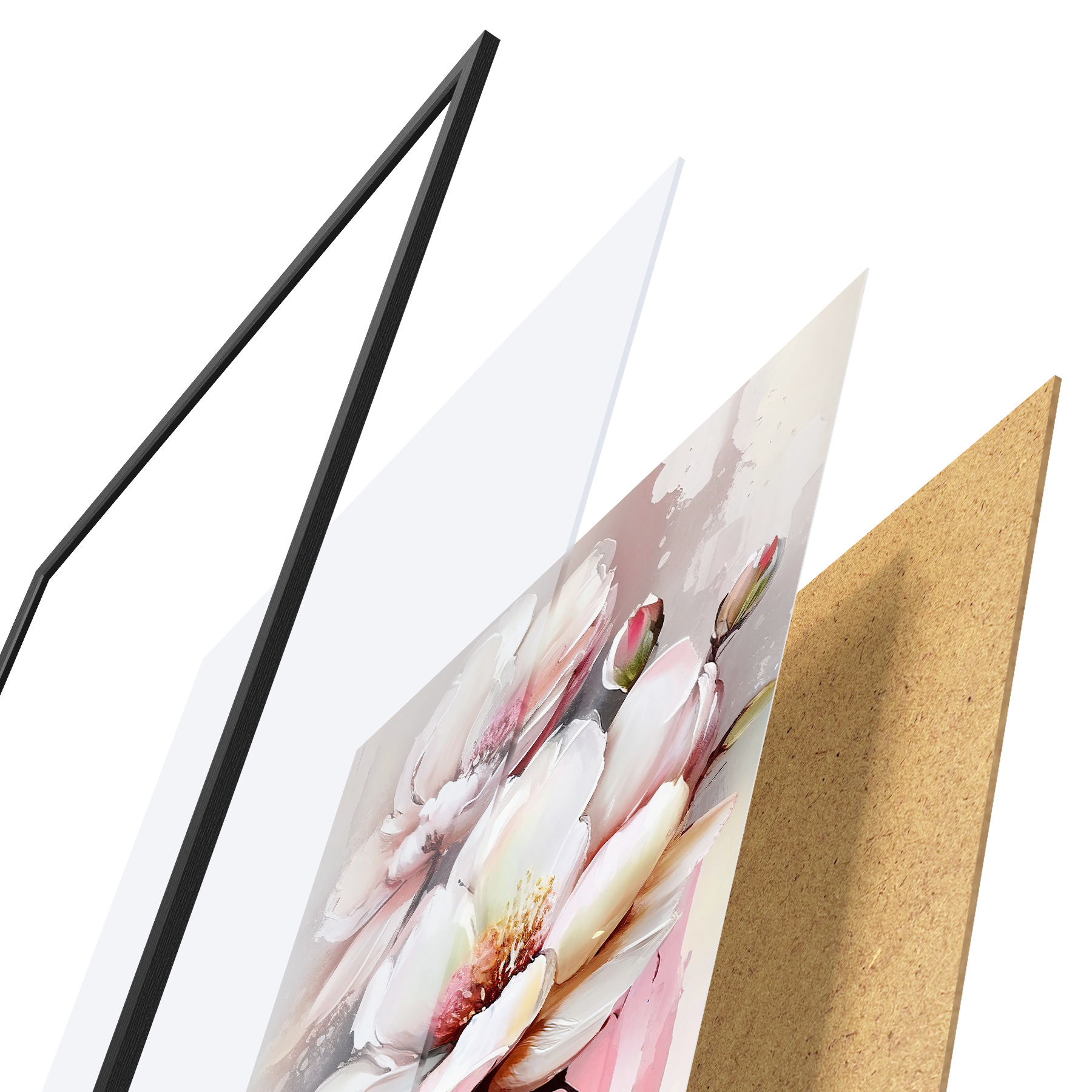 Il poster è composto da cornice, plexiglass, immagine stampata e supporto in truciolato. Il poster può essere immediatamente appeso alla parete grazie ai supporti sul retro.