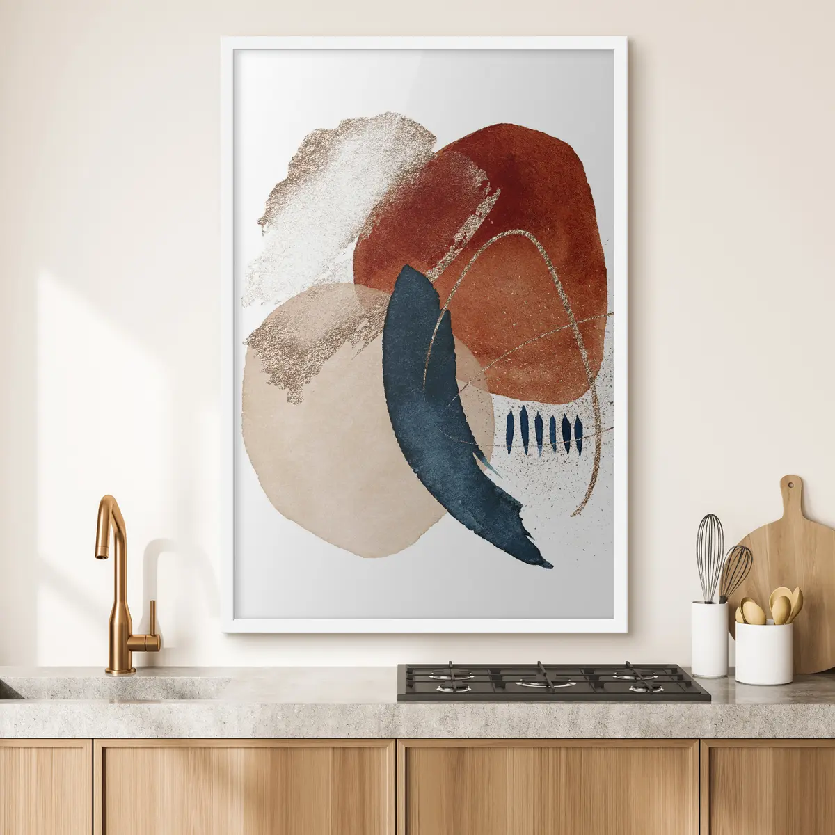 Poster Motivo acquerellato beige ed elementi su sfondo bianco Nr f35954