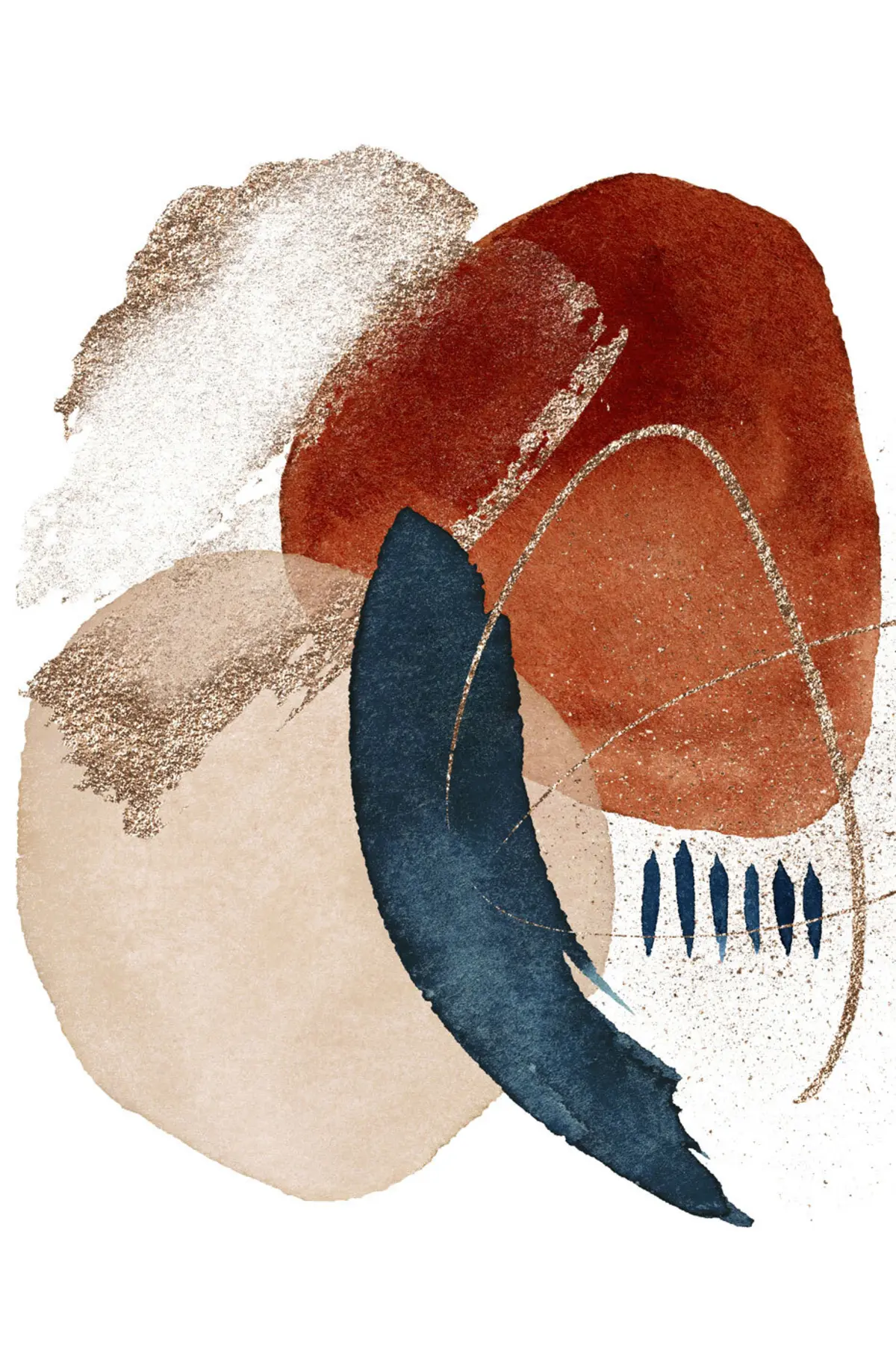 Poster Motivo acquerellato beige ed elementi su sfondo bianco Nr f35954