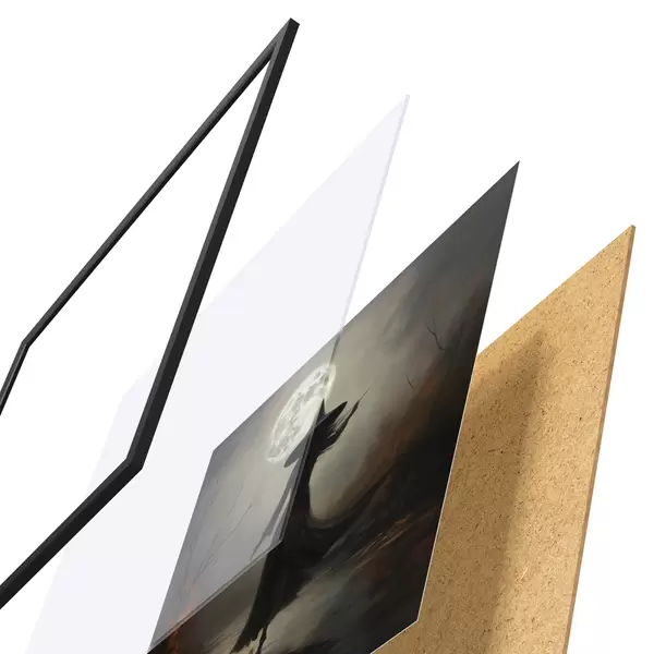 Il poster è composto da cornice, plexiglass, immagine stampata e supporto in truciolato. Il poster può essere immediatamente appeso alla parete grazie ai supporti sul retro.