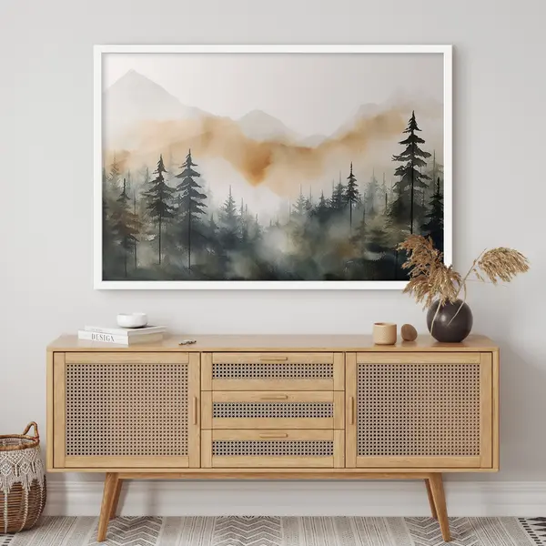 Poster Foresta montana nebbiosa all'alba Nr f36008
