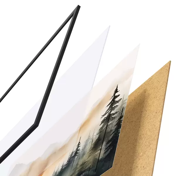 Il poster è composto da cornice, plexiglass, immagine stampata e supporto in truciolato. Il poster può essere immediatamente appeso alla parete grazie ai supporti sul retro.