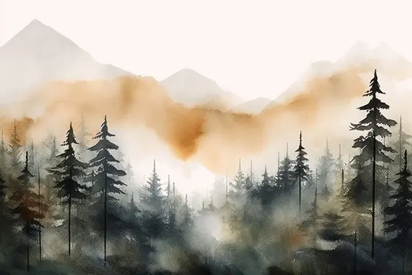 Poster Foresta montana nebbiosa all'alba Nr f36008