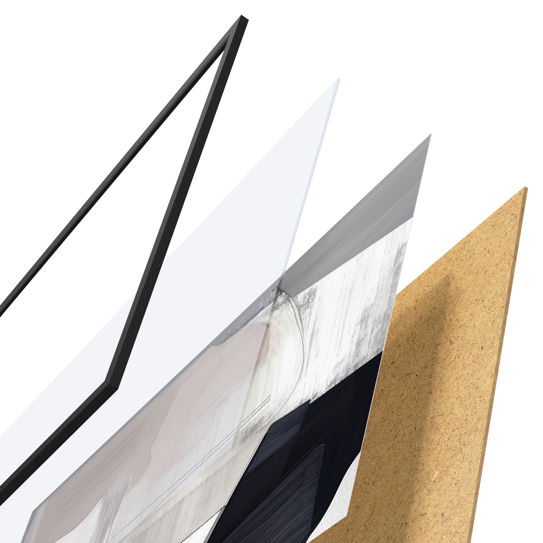 Il poster è composto da cornice, plexiglass, immagine stampata e supporto in truciolato. Il poster può essere immediatamente appeso alla parete grazie ai supporti sul retro.