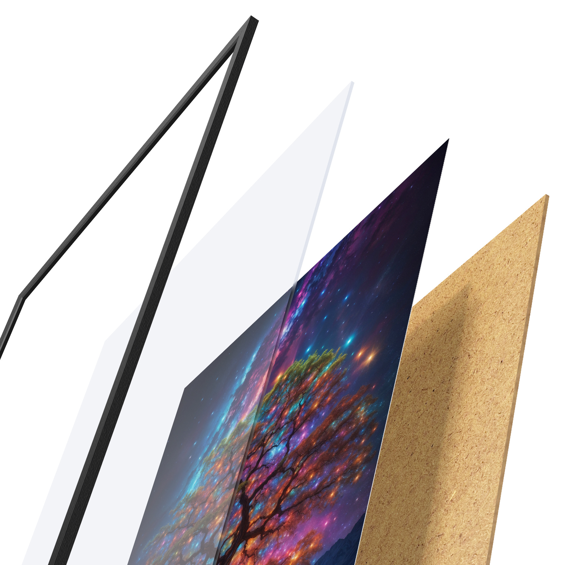 Il poster è composto da cornice, plexiglass, immagine stampata e supporto in truciolato. Il poster può essere immediatamente appeso alla parete grazie ai supporti sul retro.