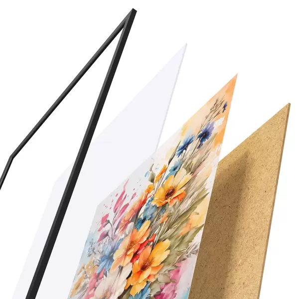 Il poster è composto da cornice, plexiglass, immagine stampata e supporto in truciolato. Il poster può essere immediatamente appeso alla parete grazie ai supporti sul retro.