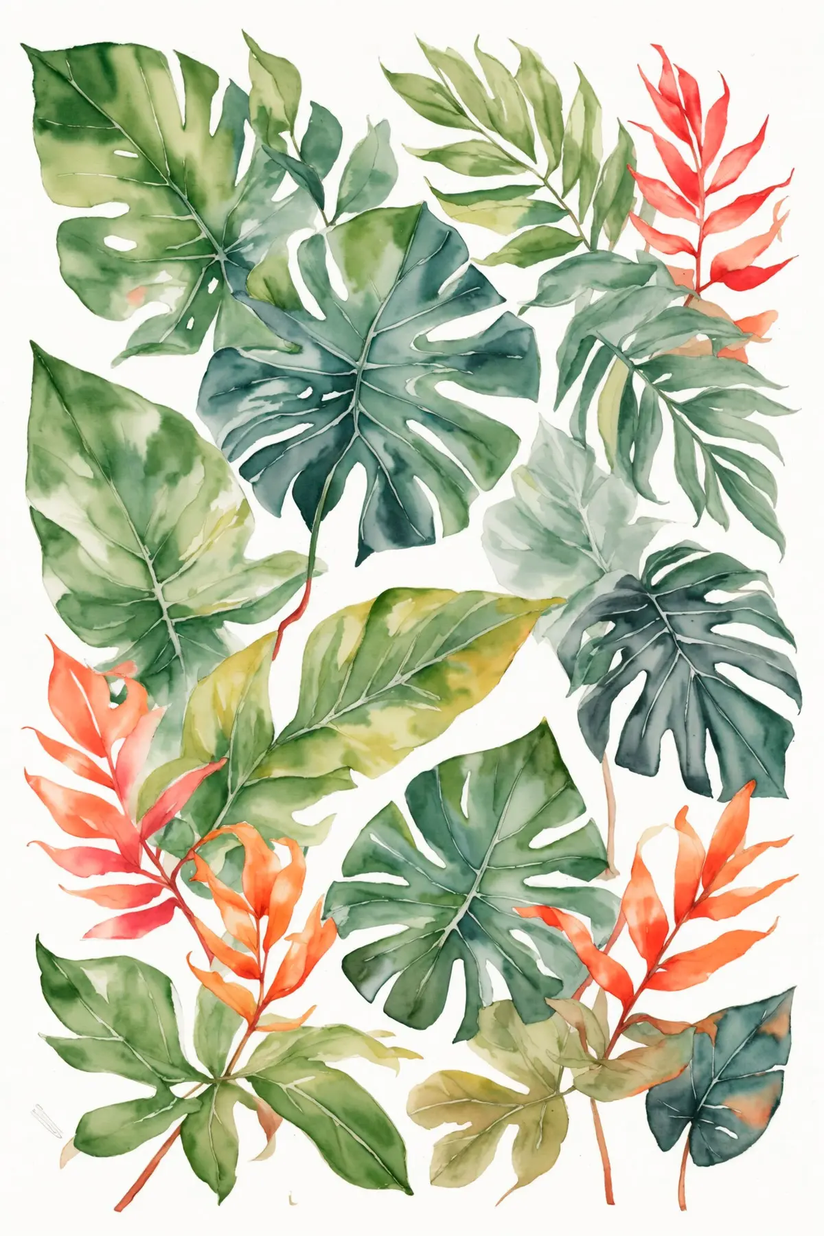 Poster Fogliame vivace in un disegno ad acquerello f36131