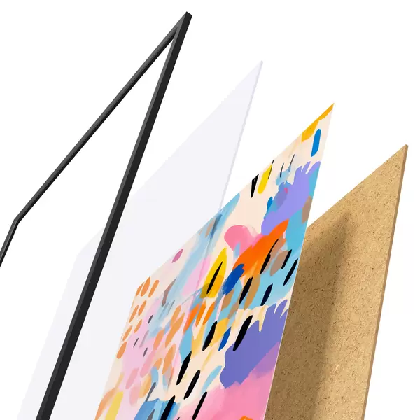 Il poster è composto da cornice, plexiglass, immagine stampata e supporto in truciolato. Il poster può essere immediatamente appeso alla parete grazie ai supporti sul retro.