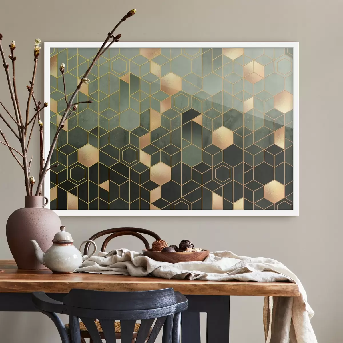 Poster Eleganza geometrica smeraldo e ambra Nr f36602v2