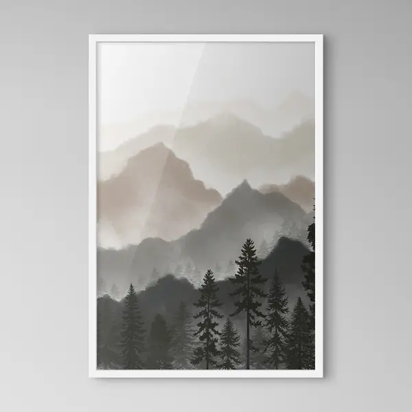 Poster Sereno paesaggio montano con alberi imponenti Nr f36607v1