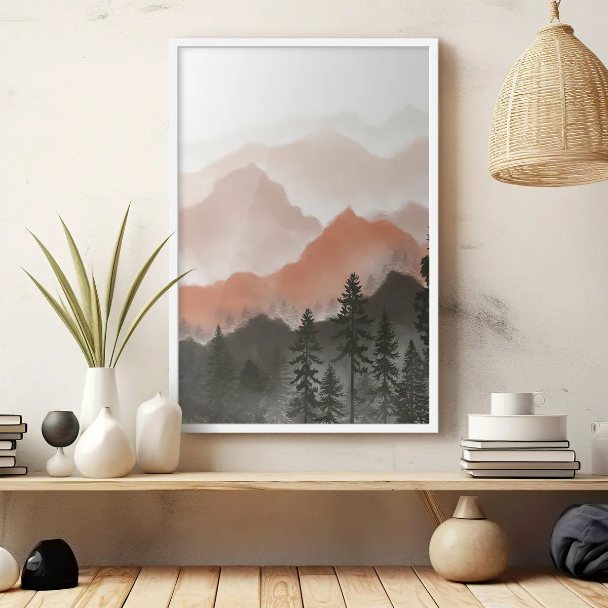 Poster Montagne serene con alberi nebbiosi f36607v2