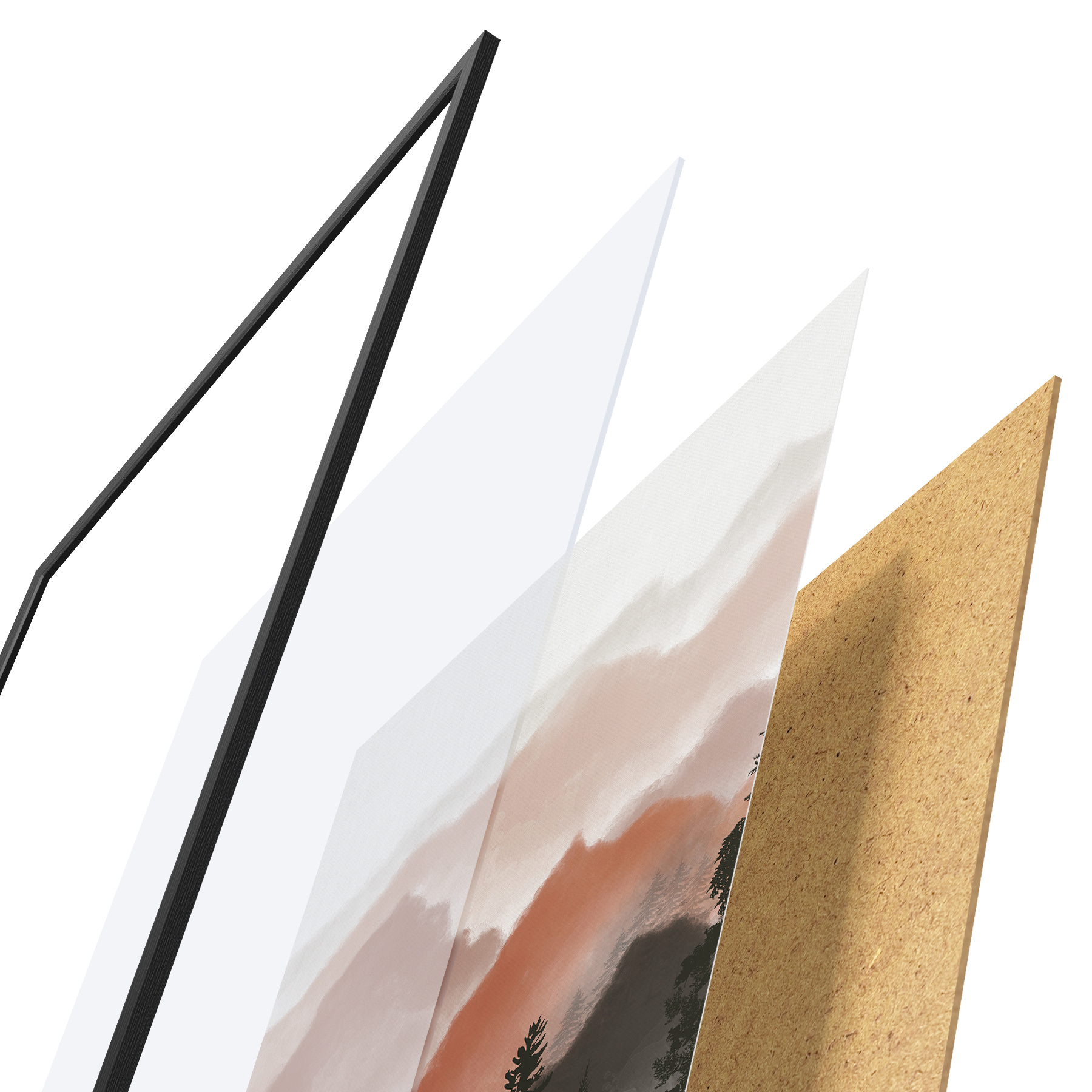 Il poster è composto da cornice, plexiglass, immagine stampata e supporto in truciolato. Il poster può essere immediatamente appeso alla parete grazie ai supporti sul retro.