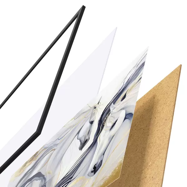 Il poster è composto da cornice, plexiglass, immagine stampata e supporto in truciolato. Il poster può essere immediatamente appeso alla parete grazie ai supporti sul retro.