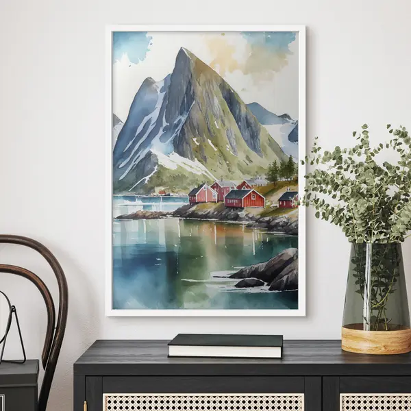 Poster Sereno villaggio sul lago di montagna Nr f36685