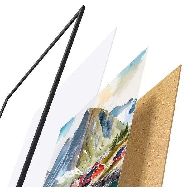 Il poster è composto da cornice, plexiglass, immagine stampata e supporto in truciolato. Il poster può essere immediatamente appeso alla parete grazie ai supporti sul retro.
