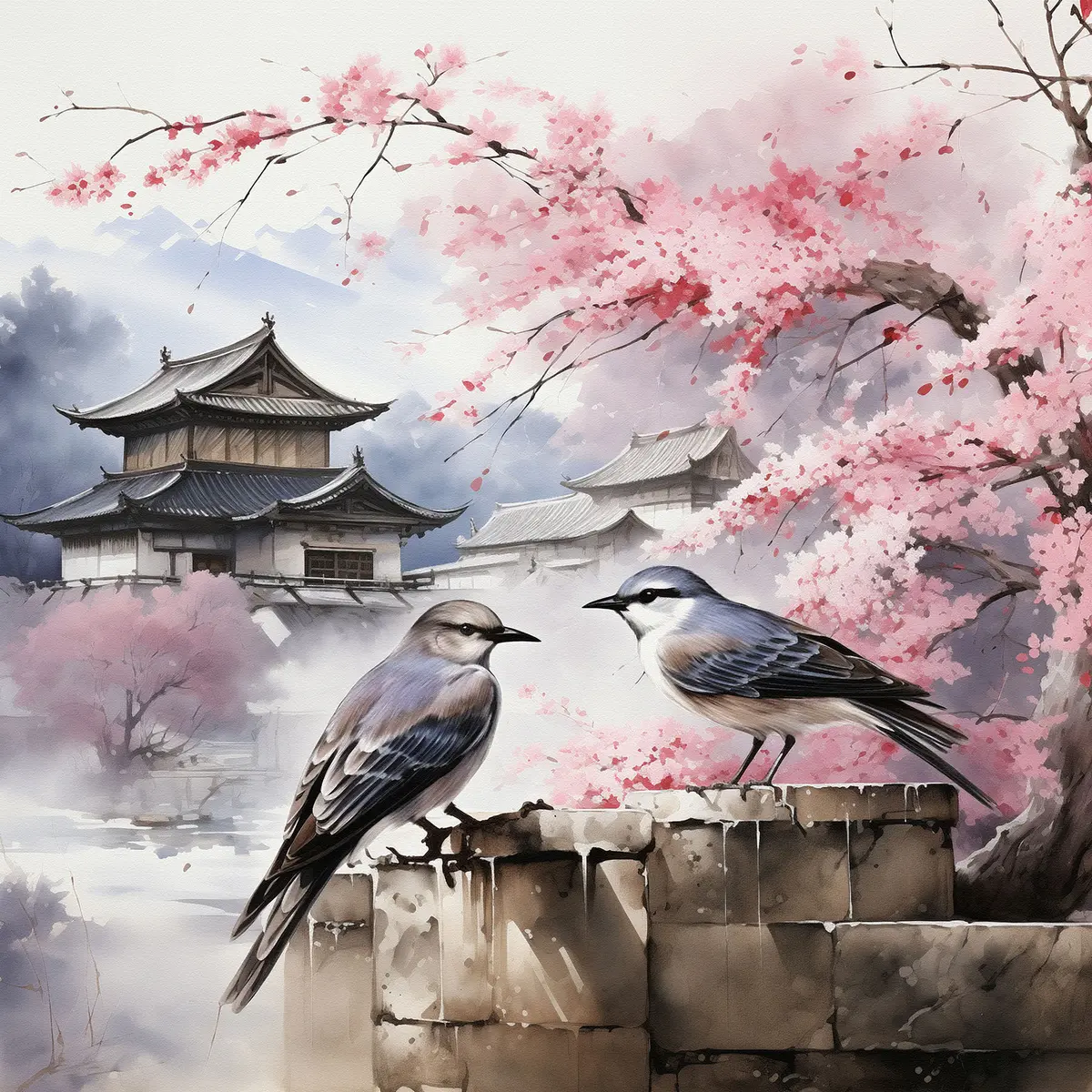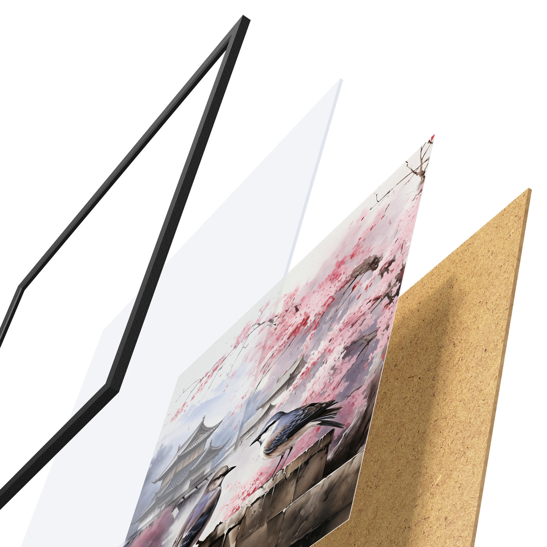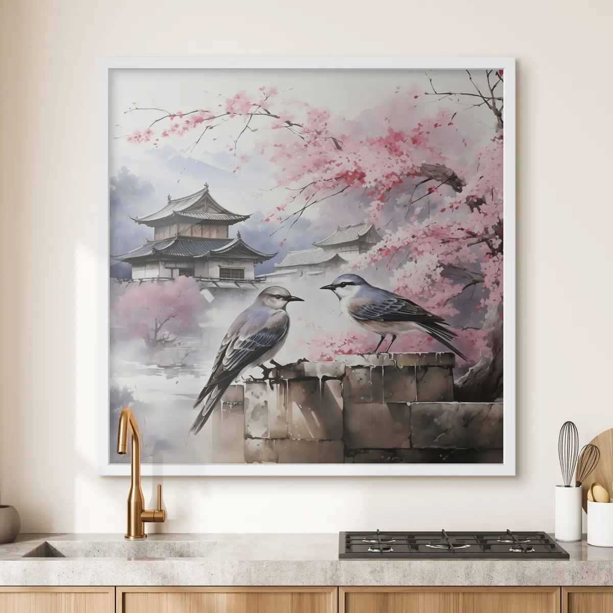 Poster Due uccelli vicino ai fiori di ciliegio Nr f36815