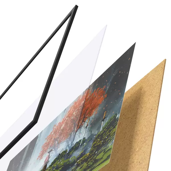 Il poster è composto da cornice, plexiglass, immagine stampata e supporto in truciolato. Il poster può essere immediatamente appeso alla parete grazie ai supporti sul retro.
