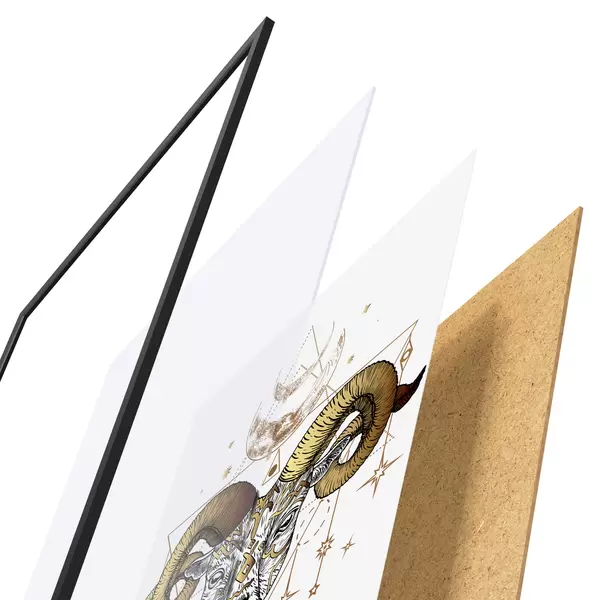 Il poster è composto da cornice, plexiglass, immagine stampata e supporto in truciolato. Il poster può essere immediatamente appeso alla parete grazie ai supporti sul retro.