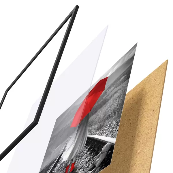 Il poster è composto da cornice, plexiglass, immagine stampata e supporto in truciolato. Il poster può essere immediatamente appeso alla parete grazie ai supporti sul retro.