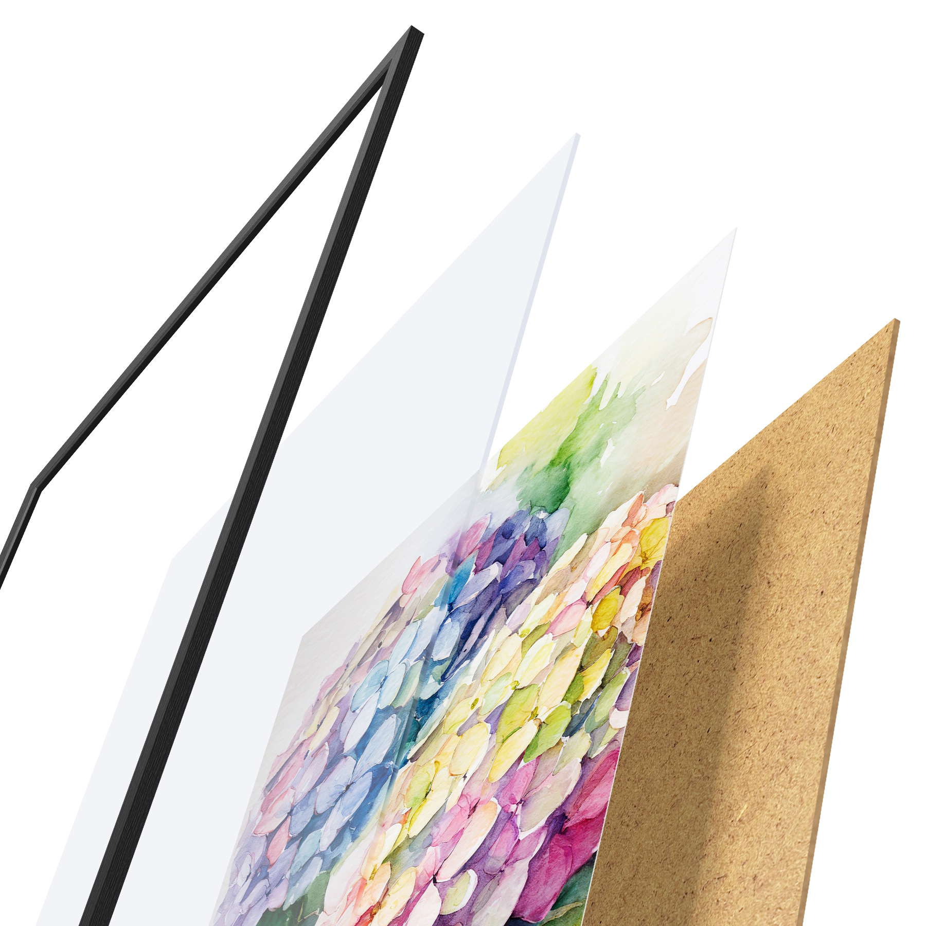 Il poster è composto da cornice, plexiglass, immagine stampata e supporto in truciolato. Il poster può essere immediatamente appeso alla parete grazie ai supporti sul retro.
