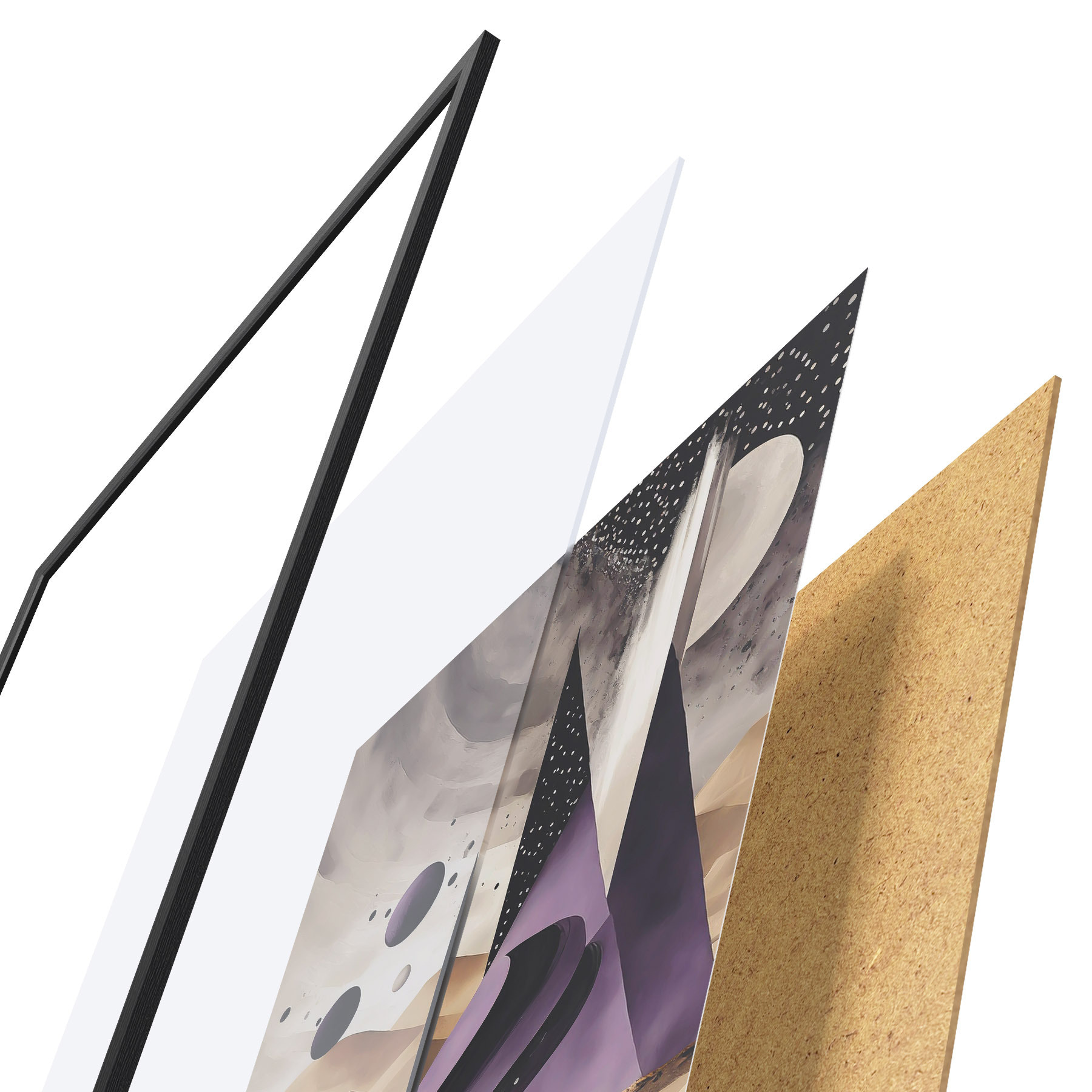 Il poster è composto da cornice, plexiglass, immagine stampata e supporto in truciolato. Il poster può essere immediatamente appeso alla parete grazie ai supporti sul retro.