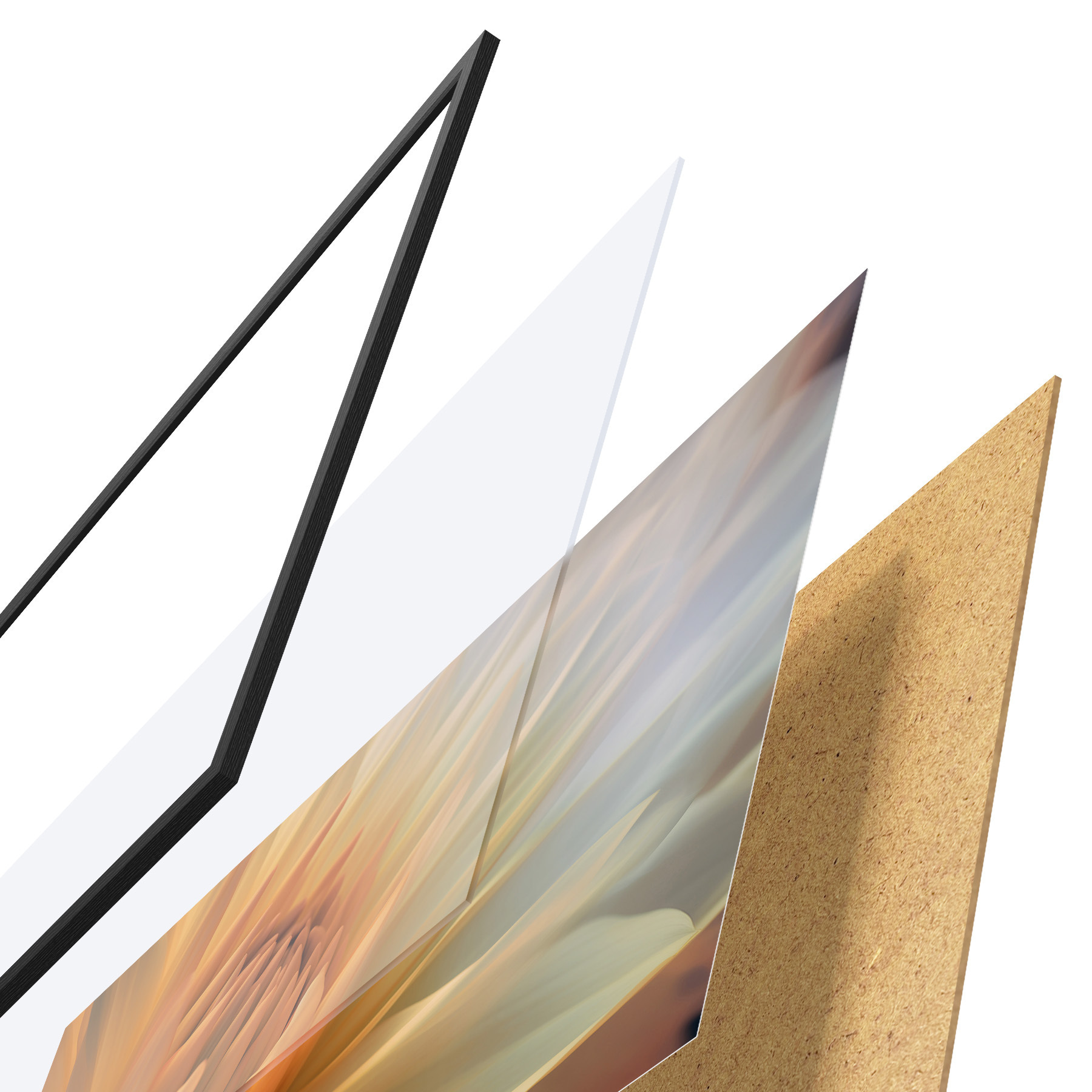 Il poster è composto da cornice, plexiglass, immagine stampata e supporto in truciolato. Il poster può essere immediatamente appeso alla parete grazie ai supporti sul retro.