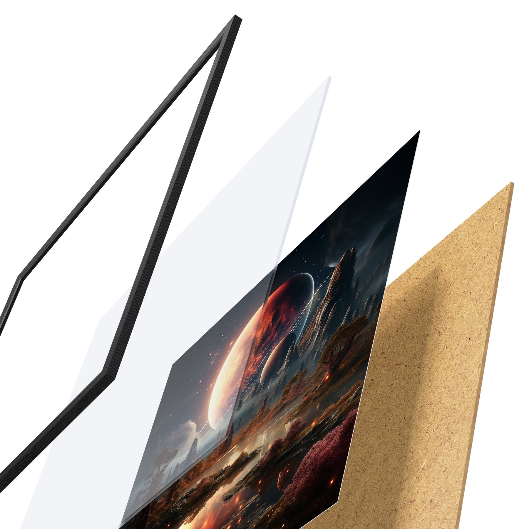 Il poster è composto da cornice, plexiglass, immagine stampata e supporto in truciolato. Il poster può essere immediatamente appeso alla parete grazie ai supporti sul retro.
