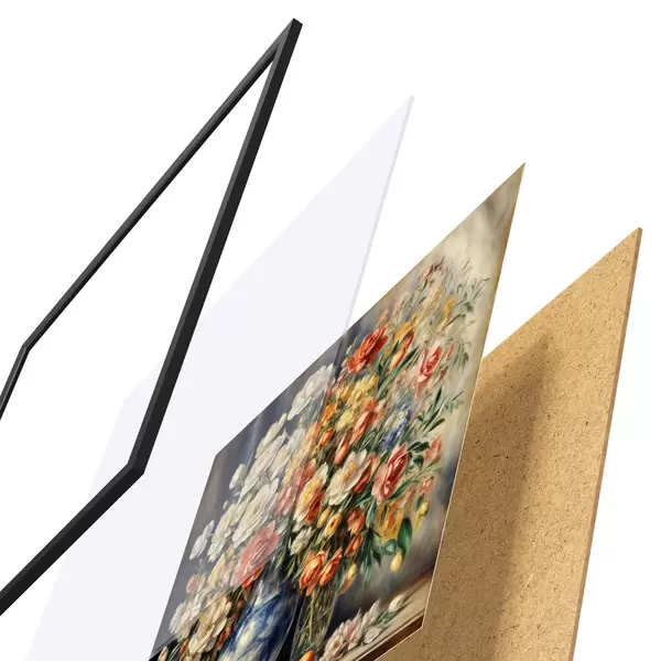 Il poster è composto da cornice, plexiglass, immagine stampata e supporto in truciolato. Il poster può essere immediatamente appeso alla parete grazie ai supporti sul retro.