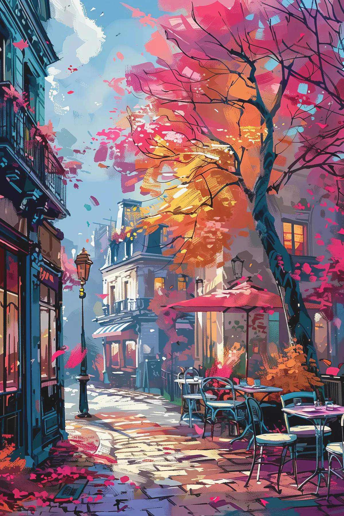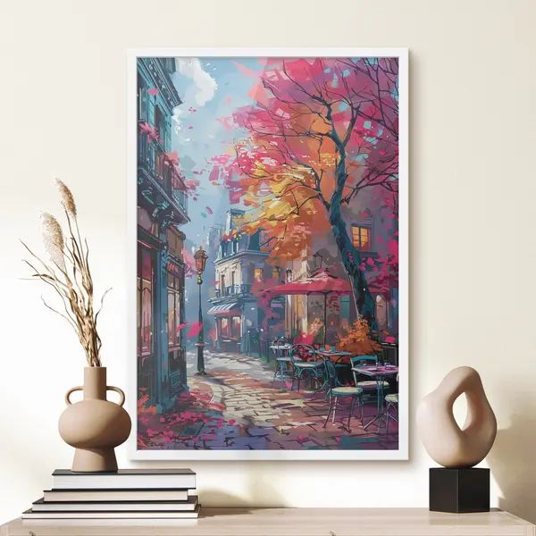 Poster L'affascinante scena di strada autunnale si svolge in modo meraviglioso f37459