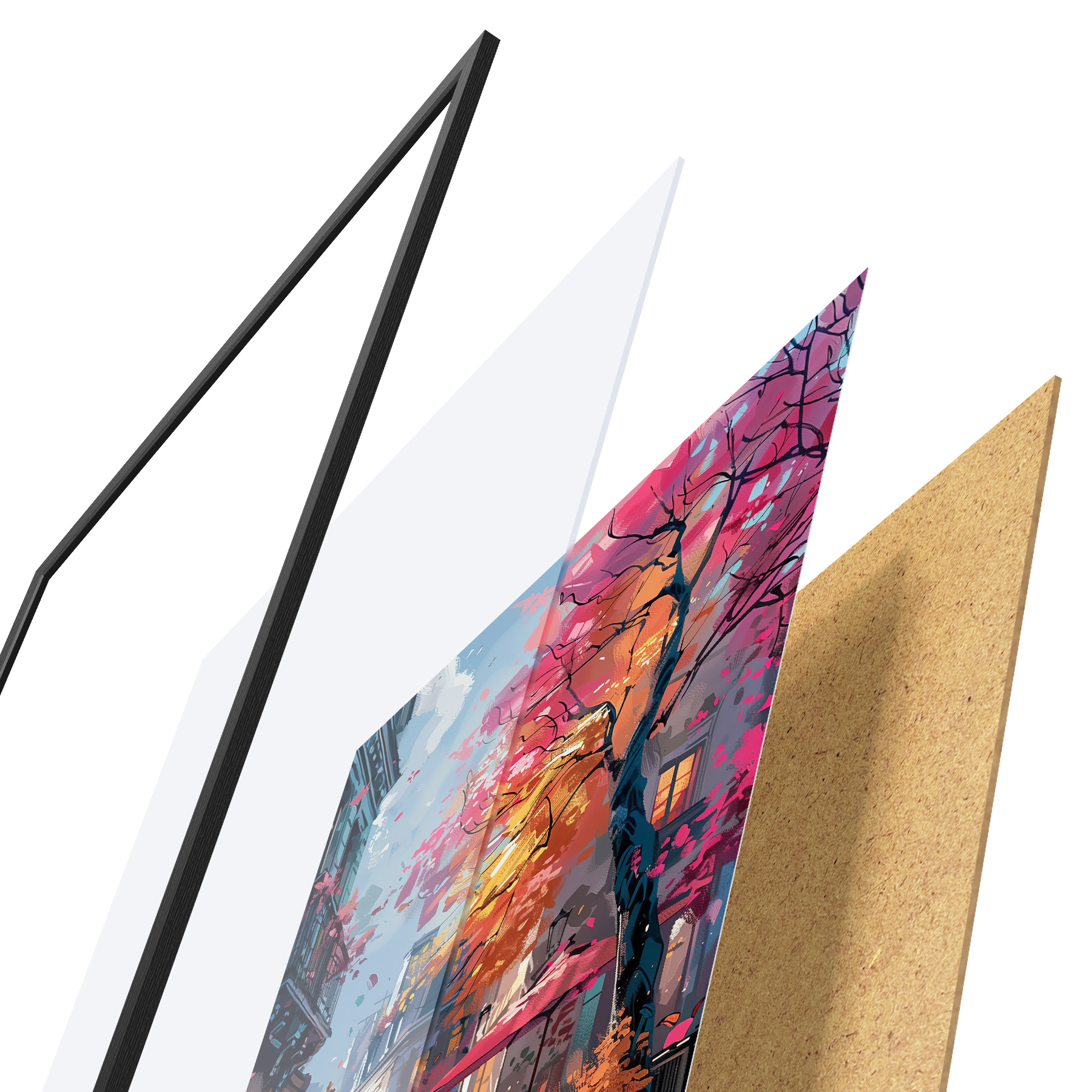 Il poster è composto da cornice, plexiglass, immagine stampata e supporto in truciolato. Il poster può essere immediatamente appeso alla parete grazie ai supporti sul retro.