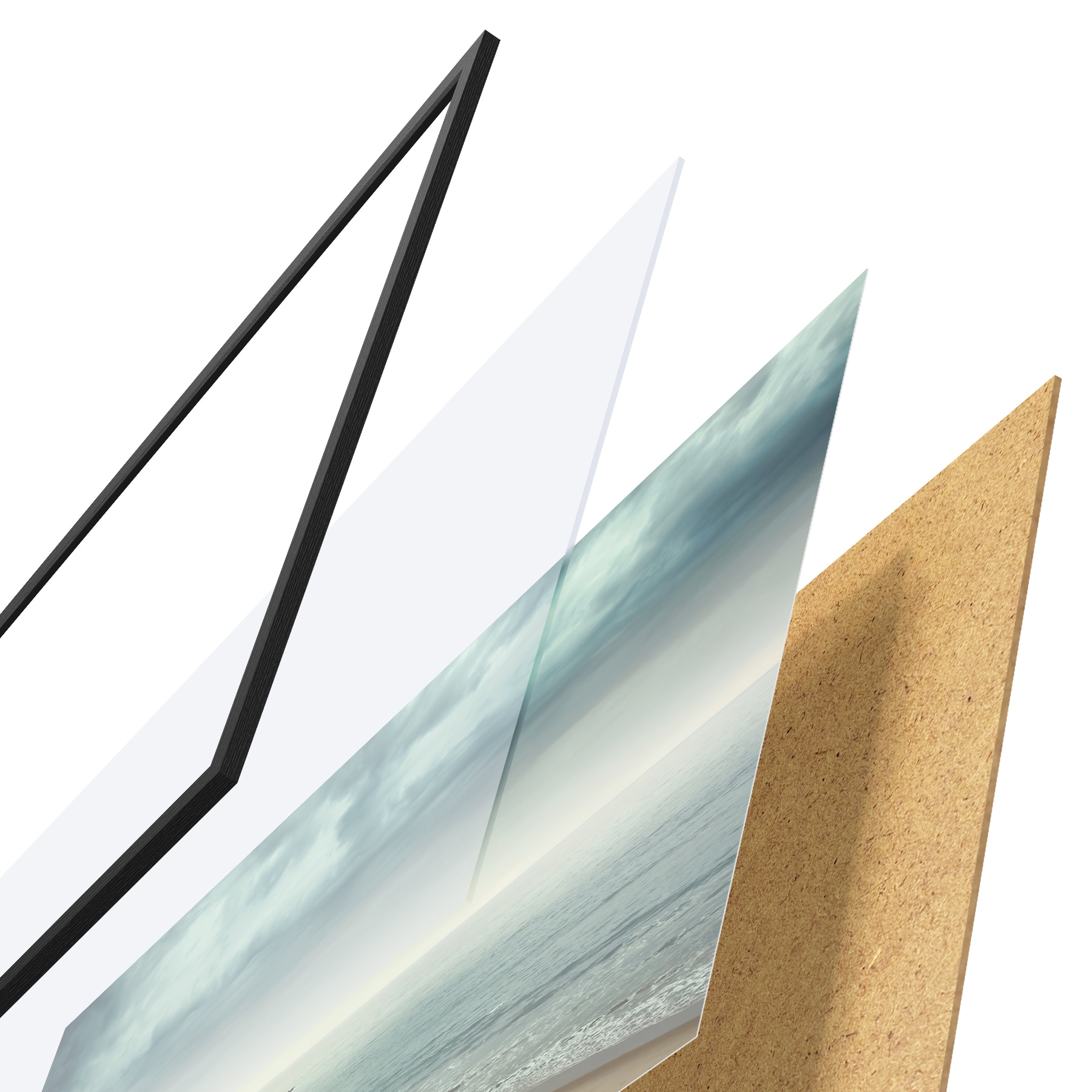 Il poster è composto da cornice, plexiglass, immagine stampata e supporto in truciolato. Il poster può essere immediatamente appeso alla parete grazie ai supporti sul retro.