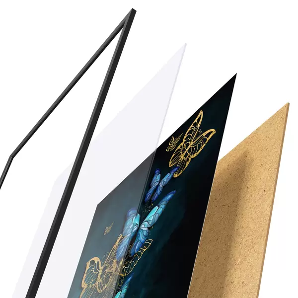 Il poster è composto da cornice, plexiglass, immagine stampata e supporto in truciolato. Il poster può essere immediatamente appeso alla parete grazie ai supporti sul retro.